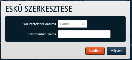 Az alábbi Eskü képernyőn végezheti el az adatkörre vonatkozó karbantartási feladatait a felhasználó: