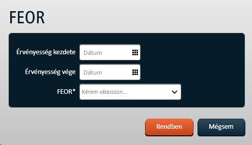 Az alábbi FEOR képernyőn végezheti el az adatkörre vonatkozó karbantartási feladatait a felhasználó: