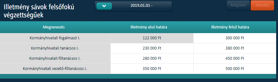 Illetménysávok - kormányzati főhivatalok és központi hivatalok