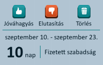 A vezetők a név melletti sárga körben láthatják a dolgozók által leadott, de még el nem bírált távollét igényeinek számát. Abban az esetben, ha az egérrel egy adott távollétre állunk, megtekinthetők a részletek, és az ikonok segítségével azonnal elvégezhető az elfogadás, vagy elutasítás.